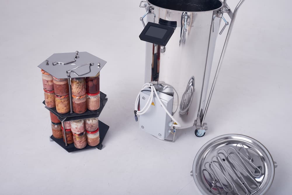 Вместе с автоклавом, вы получаете устройство для быстрого охлаждения автоклава, которое позволяет ещё быстрее охладить воду внутри автоклава. Это особенно удобно, если вы готовите в реторт пакетах. Новую партию можно будет загрузить ещё быстрее.
