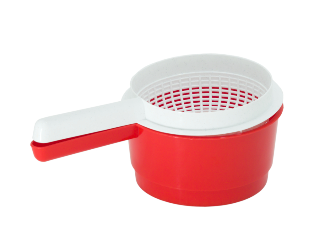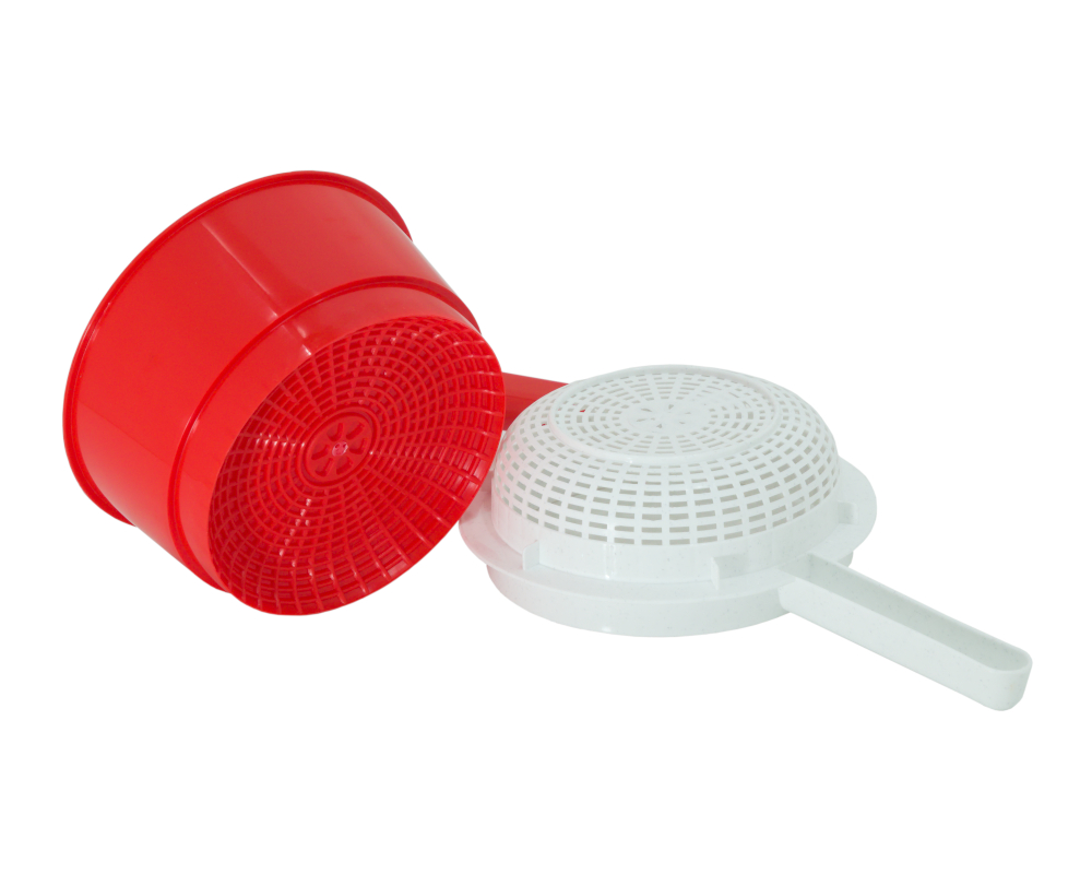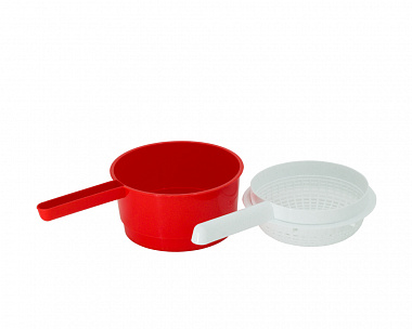 Предлагаем Вам сыродельницу, перфорированную полимерную двухэлементную (дуршлаг и ковш с ручками), для адыгейского сыра, ориентировочной массой примерно 200-300 г.