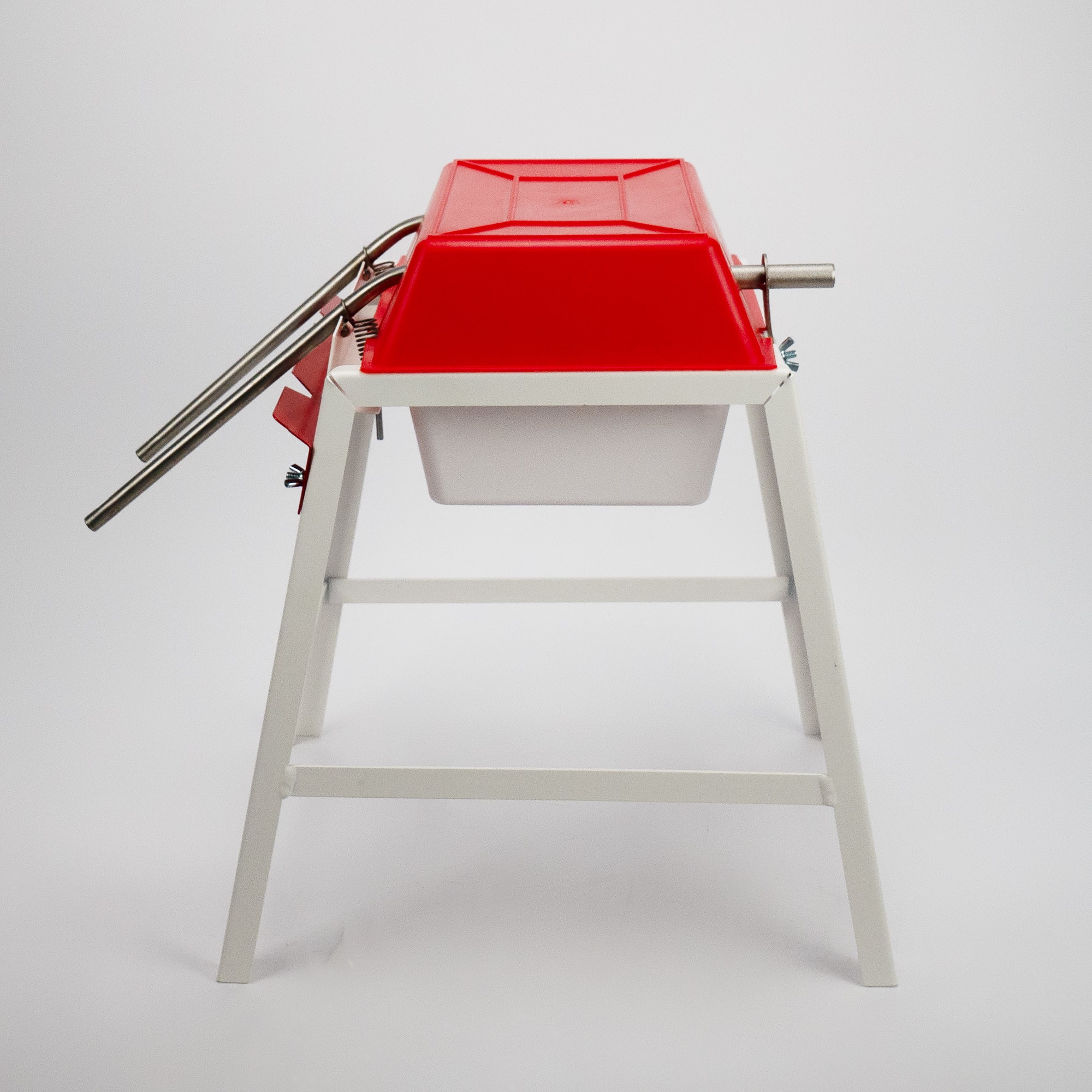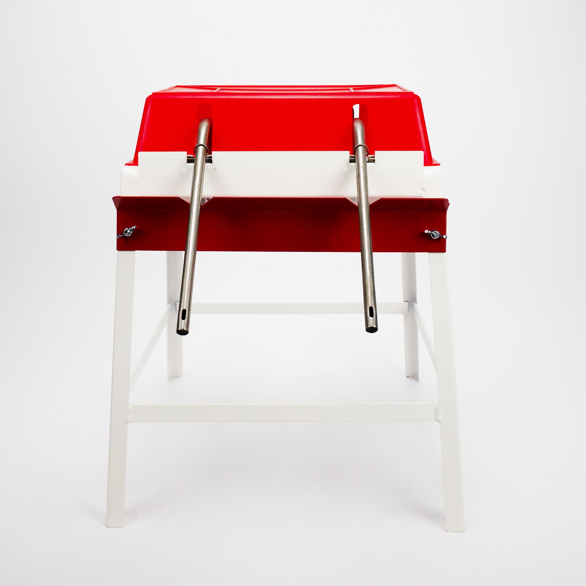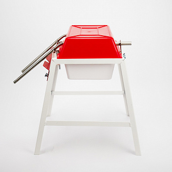 Удобный зажим на соплах поможет установить бутылки. Незаменима для небольших и средних винных производств.