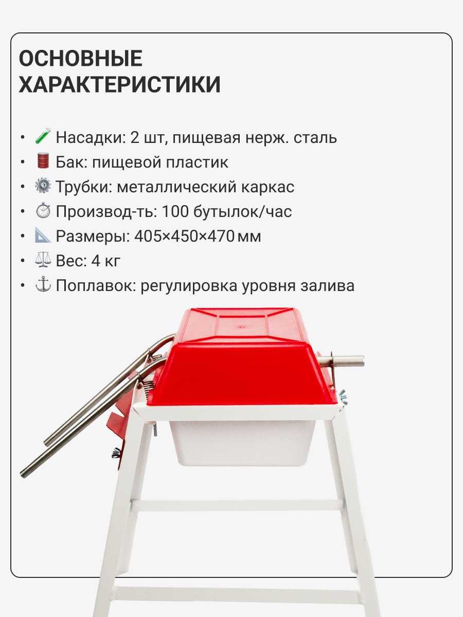 • Поплавок для регулирования уровня розлива по бутылкам.