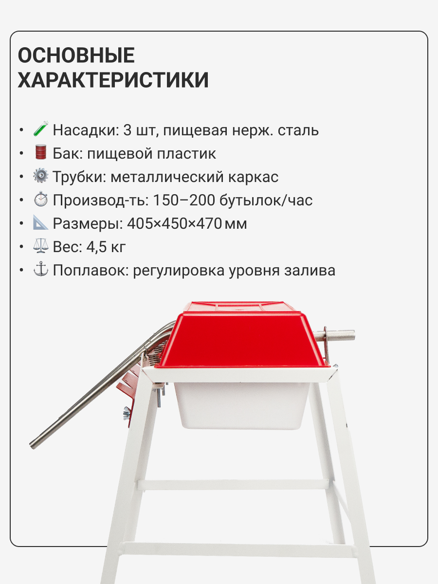 • Поплавок для регулирования уровня розлива по бутылкам.