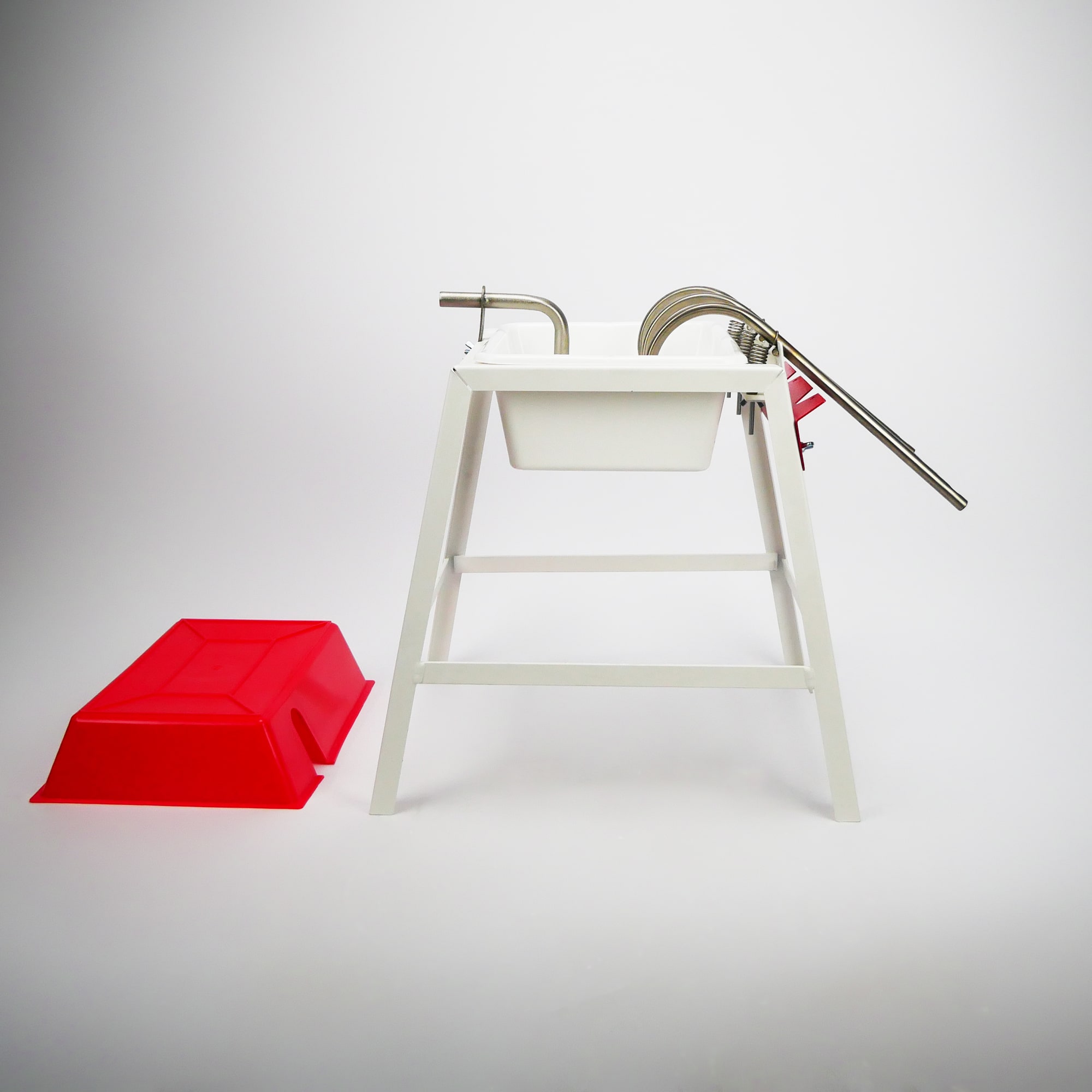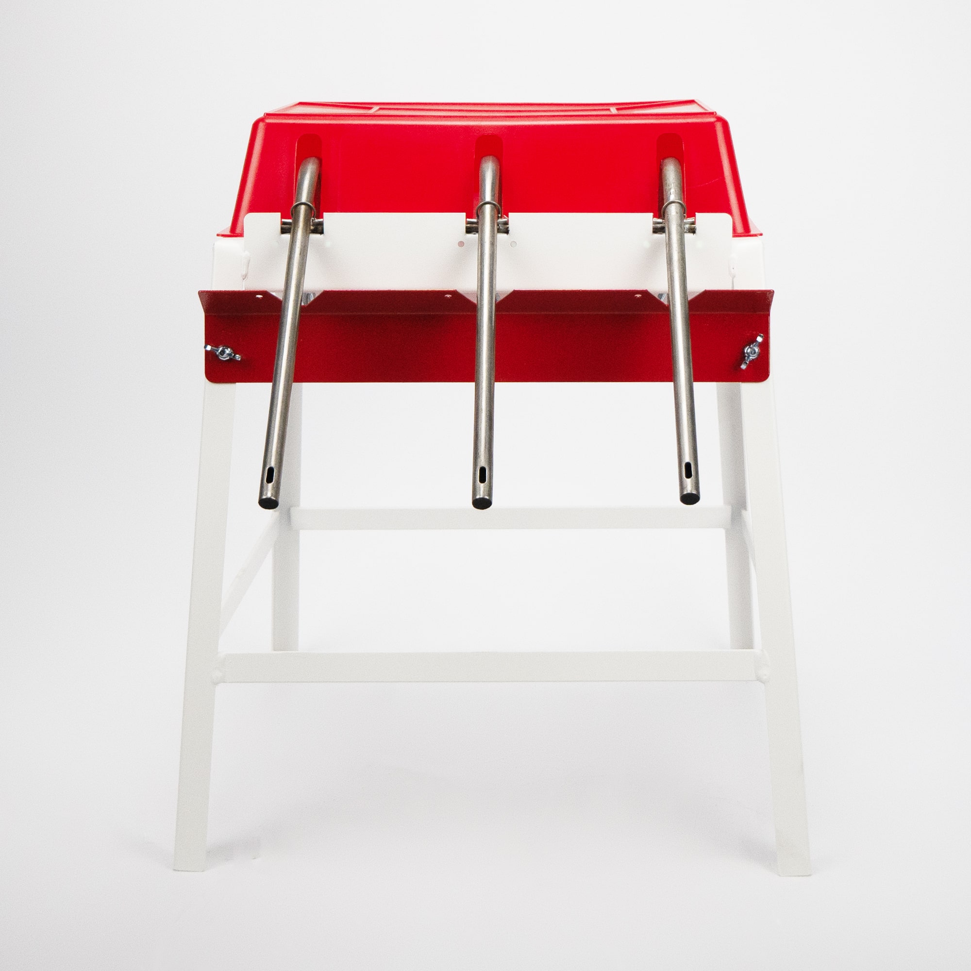Удобный зажим на соплах поможет установить бутылки. Незаменима для небольших и средних винных производств.
